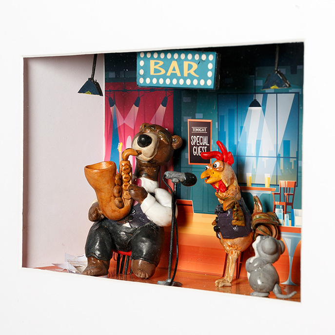 Tableaux RETOUR SUIVANT One jazzy night Mai 2020 50cm x 40cm digital painting, Kirigami technique and modeling OBTENIR LE PRIX